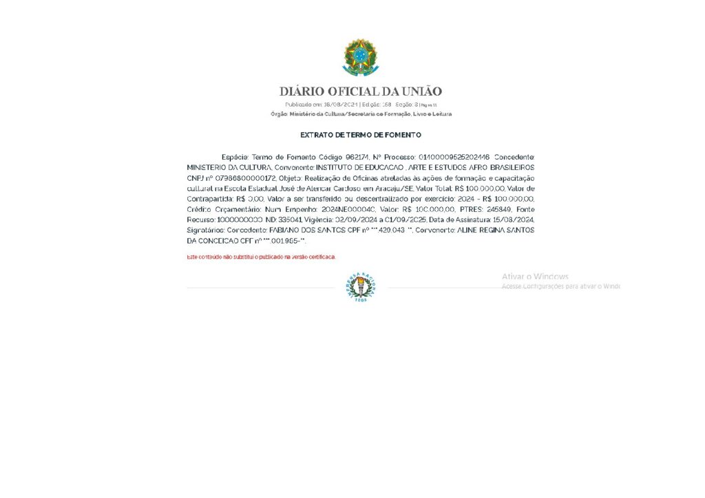 EXTRATO DE TERMO DE FOMENTO
